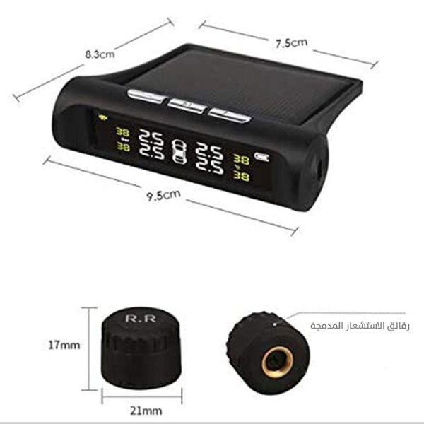 مواصفات جهاز TPMS مراقب ضغط الاطارات لاسلكي الكتروني يعمل بالطاقة الشمسية